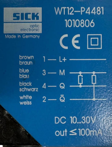 Sick WT12-P4481 Photoelectric Sensor PNP Output 100mA 10-30 VDC 1010806