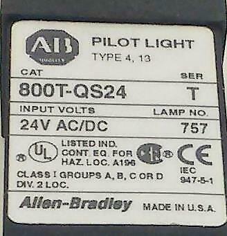 You are Purchasing a Allen Bradley Pilot Light. Model: 800T-QS24 This Pilot Light is New and Fully Guaranteed.