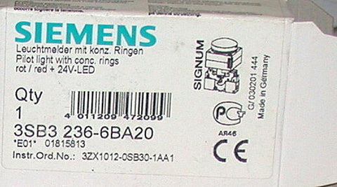 NEW SIEMENS 22 MM PILOT LIGHT 24V MODEL 3SB3236-6BA20