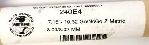 Meyer 240E4 Go/No Go Z Metric Gage 8.00/8.02MM