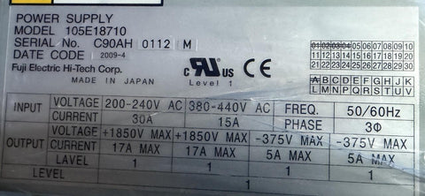 Fuji Electric 105E18710 Power Supply 200-240/ 380-440VAC 3-Phase +1850V/-375V