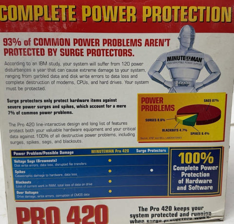 Minuteman Pro 420 UPS Uninterruptible Power Supply 120 VAC 1-Phase 420VA/260W