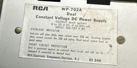 RCA WP-702A Dual Constant Voltage DC Power Supply 0-20VDC 200mA 105-135VAC