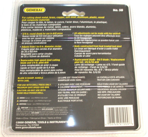 This is an Auction for a New General 1 to 6" Circle Cutter Tool Straight Shank, 3/8" Shank Diameter, No. 5B