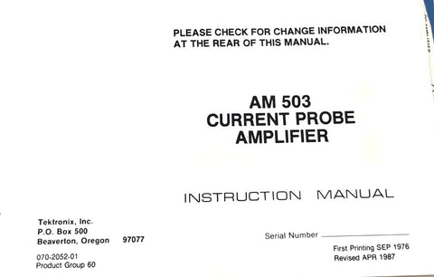 Tektronix AM 503 Current Probe Amplifier Instruction Manual