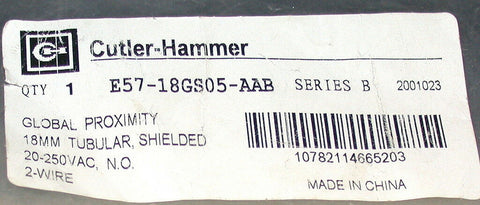 NEW CUTLER-HAMMER INDUCTIVE PROXIMITY SWITCH 20-250 VAC MODEL E57-18GSS05-AAB