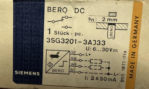 Siemens 3SG3201-3AJ33 Inductive Proximity Switch 24 VDC 2 mm DIN Rail