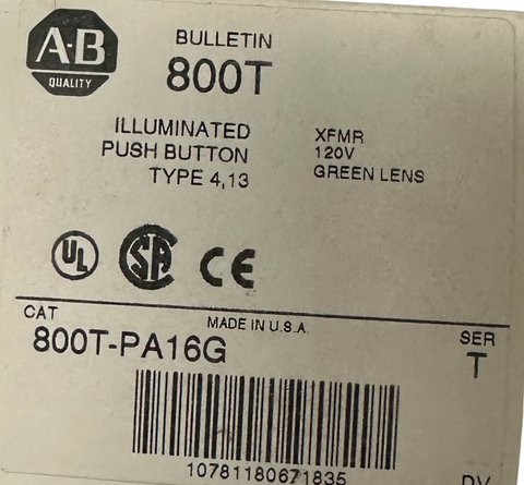 Allen-Bradley 800T-PA16G Push Button Illuminated Green Lens 120VAC 50/60HZ Ser T