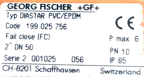 George Fischer 199.025.756 Pneumatic Actuated PVC Diaphragm Valve 2" 150 PSI