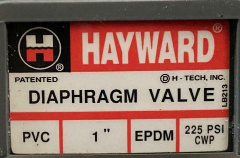 Hayward 1" PVC Diaphragm Valve EPDM 225 PSI