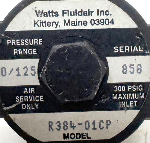 Watts Fluidair R384-01CP Miniature Regulator 0/125 PSI Pressure Range 300 PSIG