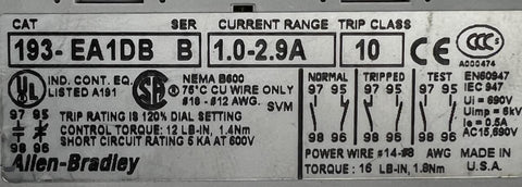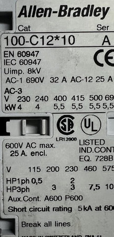 Allen-Bradley 100-C12*10 Contactor Series A w/ 193-EA1DB Overload Relay