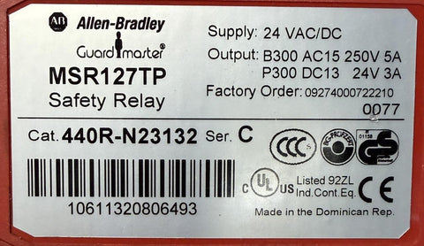 Allen-Bradley MSR127TP GuardMaster Safety Relay Series C 24 V AC/DC 440R-N23132