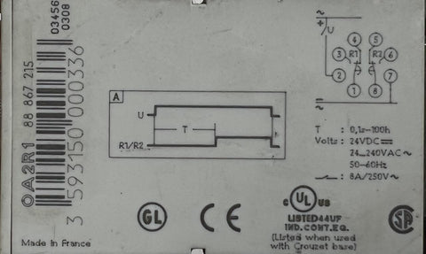 Crouzet OA2R1 Time Delay Relay 24-240VAC/DC 0.1 s-100 h 8-Pin w/ 0T08-PC Socket