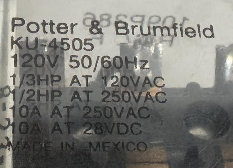 Potter & Brumfield KU-4505 Relay 120V 50-60HZ 250VAC 28VDC