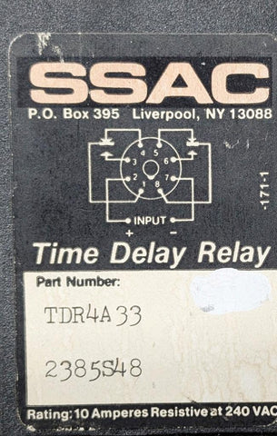 SSAC TDR4A33 Time Delay Relay 10A 240VAC 2385S48