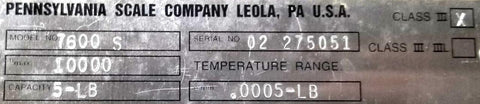 Pennsylvania Transcat 7600S Scale 10000nMax 5lbs Capacity Class III