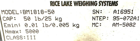 Rice Lake BM1818-50 Bench Scale Base W/ Sterling Scale DW810-N12 Indicator