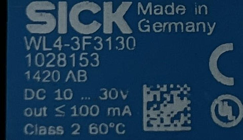 Sick WL4-3F3130 Photoelectric Sensor 10-30VDC 100mA PNP 1028153