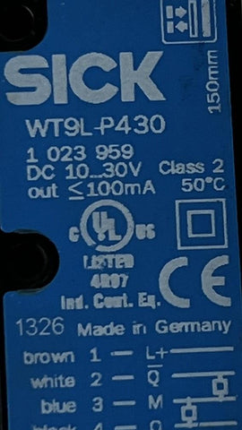 Sick WT9L-P430 Photoelectric Sensor 10-30VDC 100mA PNP 1 023 959