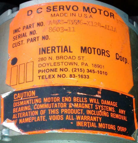 Inertial Motors A40S-T006-X124-AL1A DC Servo Motor Made in USA