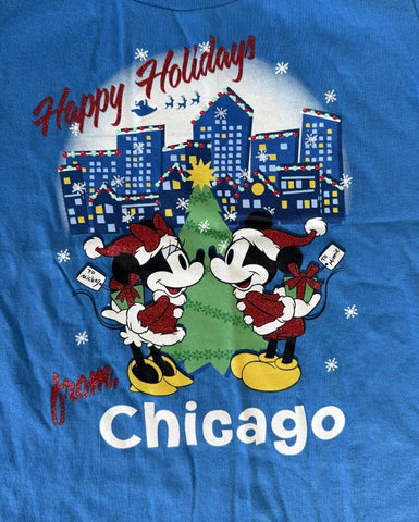Disney Girls Mickey Mouse & Minnie Happy Holidays From Chicago Blue Shirt Size M