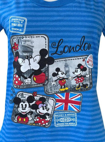 Disney Women's Mickey Mouse & Minnie London UK Graphic Blue Shirt Size Medium