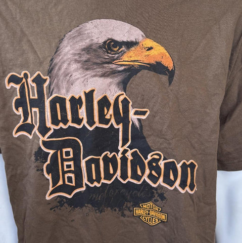 Harley Davidson Motorcycles Men's Eagle Short Sleeve Brown Shirt Size XL