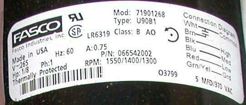 You are Purchasing a Fasco Single Phase AC Motor. Model: 71901268 066542002 This Motor is New and Fully Guaranteed.