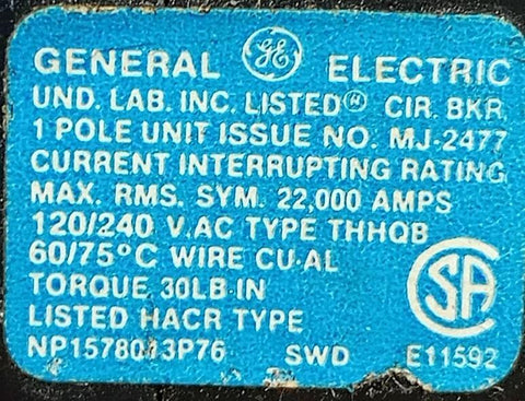 General Electric THHQB120 1-Pole Circuit Breaker 20A 120/240VAC