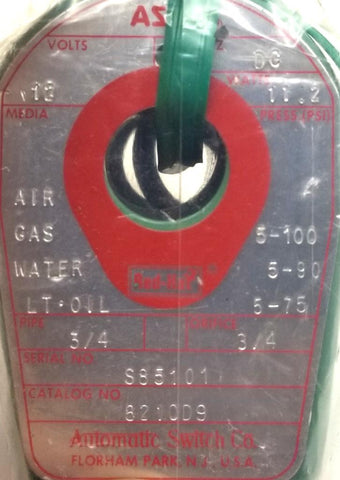 Asco Red Hat 8210D9 Solenoid Valve 12VDC 11.2W 3/4" Pipe 5-100Psi