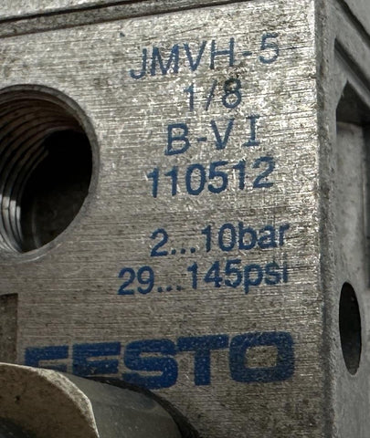 Festo JMVH-5 110512 Solenoid Valve 145 PSI w/ (2) Coils MVH-3-1,2 106102 13464