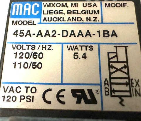 MAC 45A-AA2-DAAA-1BA Solenoid Valve 4-Way 1/8" NPT 50/60 Hz 150 PSI