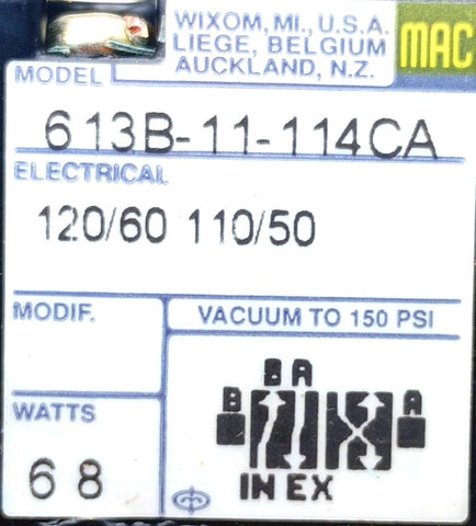 MAC 613B-11-114CA Solenoid Valve 110/120VAC 50/60HZ 6.8W 150PSI