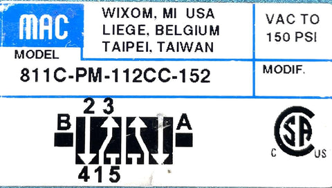 MAC 811C-PM-112CC-152 4-Way Solenoid Valve 1/4" NPTF 110/120VAC 50/60HZ