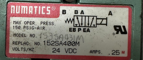 Numatics 153SA431M Solenoid Valve 24 VDC 0.25 A 150 PSIG Air 152SA400M
