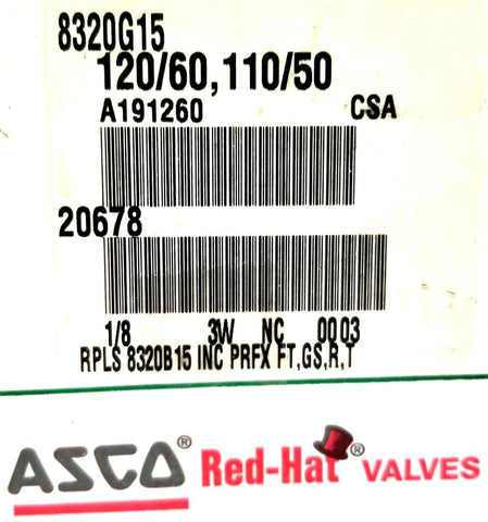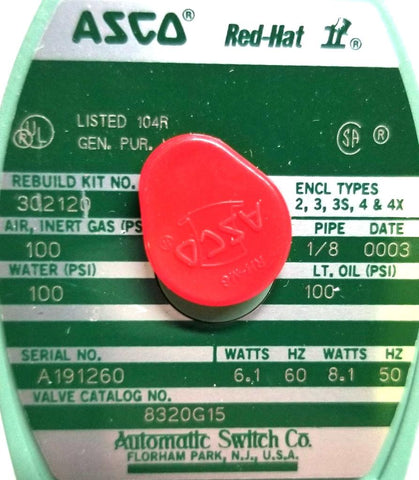Red Hat ASCO 8320G15 Solenoid Valve 302120 100psi 1/8" Pipe 6.1-8.1W 50-60Hz