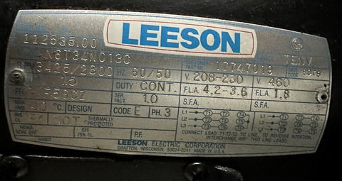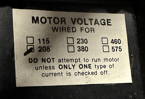 Electric: 208-230/460V, 3 Phase (Currently wired @ 208V)