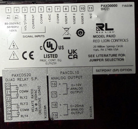 Red Lion Controls PAXD0000 Model PAXD Digital Panel Meter 85-250VAC 50/60Hz 16VA