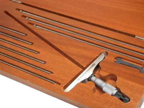 You are bidding on a Like new Starrett 0 - 225mm Depth Micrometer Set, Catalog # 445MBZ-225RL -features a combination ratchet and speeder, ring-type locknut, ratchet stop and locknut. The purpose of this fine tool is to measure the depth of holes, slots, shoulders, and projections quickly and easily to 0.01mm graduations - 4"(100mm) Base. Accuracy to Mic head +--.0025mm ; Rods +--.005mm Additional Features: * Base shape design that automatically position the fingers so that the base is easily held in place for measuring stability * All precision screws are ground and lapped * All bases and rods are hardened, ground, and lapped for permanent accuracy * All reading surfaces have a satin chrome finish that resists rust and provides a no-glare background for the sharp lines and figures * All 5/32" measuring rods are adjustable * The combination ratchet and speeder for uniform pressure and quicker adjustment * Ring-type lock nut for quick and sure locking * Furnished in a hardwood protective case * Starrett workmanship Headquartered in Athol, MA, in the heart of New England, where manufacturing began and evolved into what it is today, Starrett has a history and reputation so rich and solid that the words "quality" and "Starrett" are virtually synonymous. I will fully guarantee this item - new cost $600. We have lots of quality inspection tools available - see my other auctions.