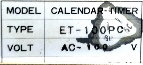 Sunao ET-100PC Calendar Timer 100VAC EN4-2350A I W/ 2 Buttons W/ 2 Switches
