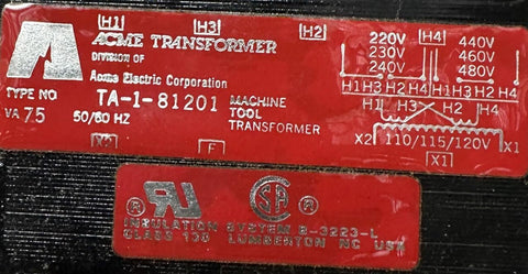 Acme TA-1-81201 Industrial Control Transformer 75VA 240/480V to 120V 50/60Hz