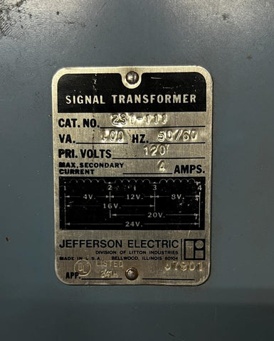 This listing is for a Jefferson Electric Signal Transformer
