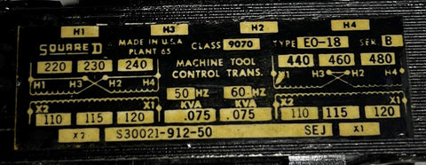 Square D 9070 EO-18 Industrial Control Transformer 0.075 kVA 240/480 V to 120 V