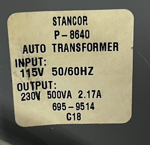 Stancor P-8640 Auto Transformer 500VA 115V Pri 230V Sec 50/60Hz 2.17A