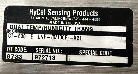 HyCal Sensing Products CT-830-E-LNF-(0/100F)-X21 Dual Temp/Humidity Transmitter