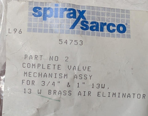 Spirax Sarco 54753 Complete Valve Mechanical Assembly For 3/4" & 1", 13W