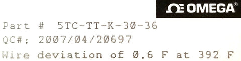 Omega 5TC-TT-K-30-36 Thermocouple Wire 36" Teflon Insul Type K (Pack of 5)