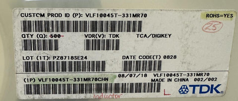 Reel of 198 TDK VLF10045T-331MR70 Shielded Wire-Wound Power Inductor 330uH 20%