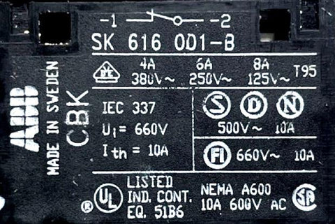 ABB SK 616 001-B Start/Stop Switches Red & Black 10A 600V NEMA A600